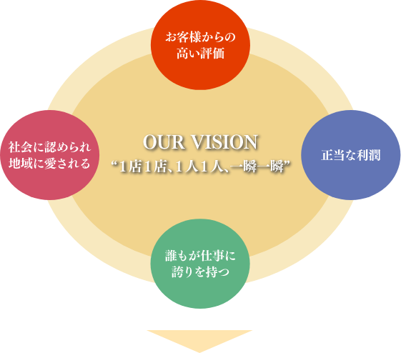 「社会、地域、お客様に評価され、従業員のやりがいとともに正当な利潤を得る」